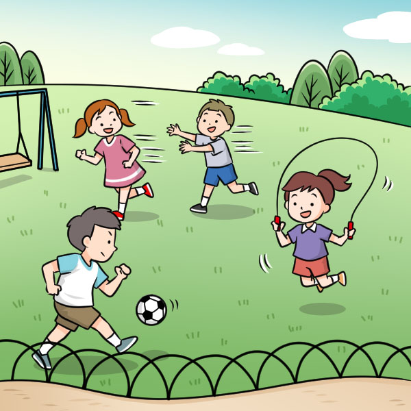 有人踢球,有人跳索,有人爽鬼捉人