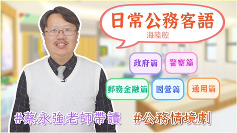 針對公務人員,以情境短劇演示如郵政金融、國營事業、縣市政府與鄉鎮市區公所、警察局等各類等公家單位常見的民眾洽公情境,並帶讀可能遇到的客家用語,使在客家語言區服務的人員,能在短期間內能快速入門,學會實用的公務用語,並在日常中運用。