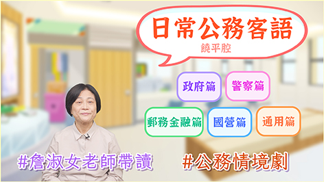 針對公務人員,以情境短劇演示如郵政金融、國營事業、縣市政府與鄉鎮市區公所、警察局等各類等公家單位常見的民眾洽公情境,並帶讀可能遇到的客家用語,使在客家語言區服務的人員,能在短期間內能快速入門,學會實用的公務用語,並在日常中運用。