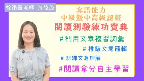 針對使用海陸腔應考【中級暨中高級認證】者,說明如何使用「文章」作為自學練習閱讀測驗題型,並規劃 2篇海陸腔等不同類型文章,透過文章判斷語意、具較難詞彙的文章及透過填空的上下文判斷應填入的字詞。